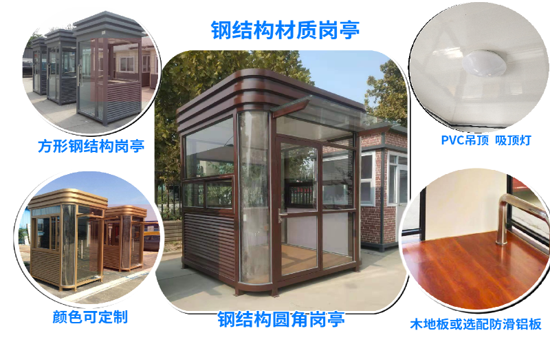 鋼結(jié)構(gòu)崗?fù)みm用于酒店、大廈、機(jī)關(guān)、小區(qū)保安、收費(fèi)、停車場(chǎng)、物業(yè)、高速公路、港口等。