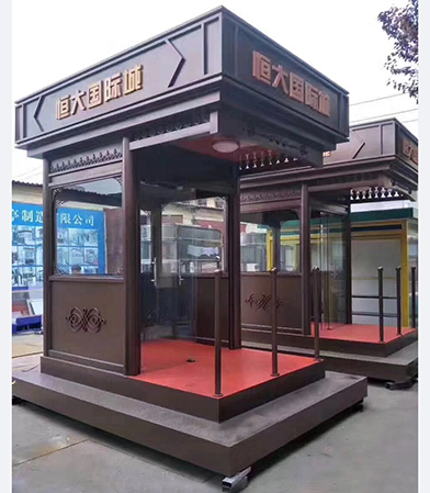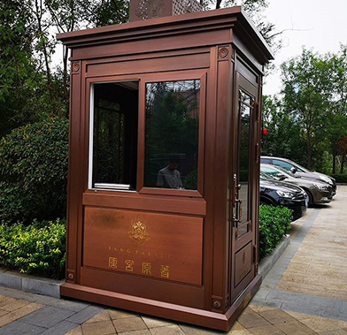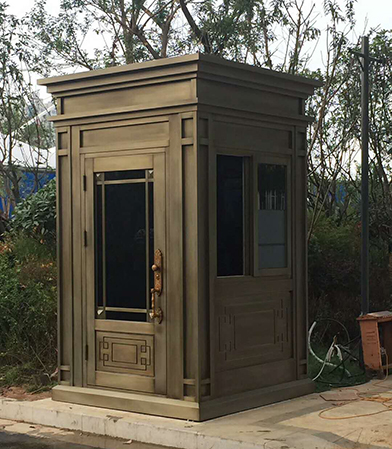 2、崗?fù)w:崗?fù)ね鈮w采用不銹鋼或鋼板,后期做防舊防銅處理,內(nèi)置擠塑板或防火巖面保溫層,內(nèi)墻板采用9mm厚白色高密度板或3mm厚臺灣吉祥牌鋁塑板裝修。